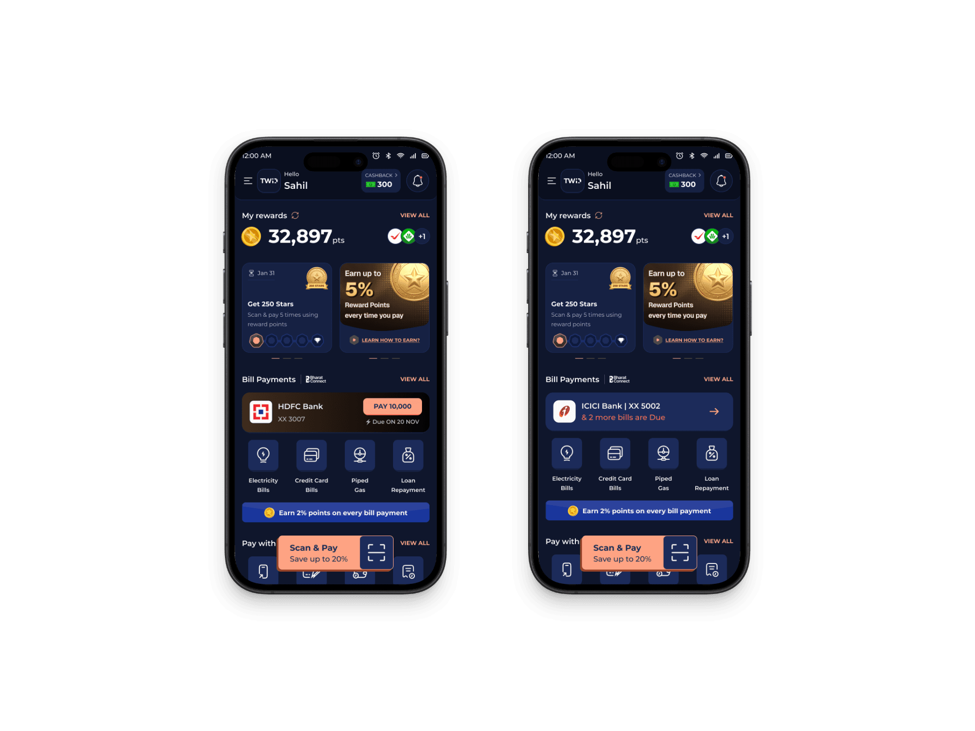 Built a native BBPS experience in TWID, enabling utility bill payments via UPI or reward points. Focused on biller discovery, reward nudges, and merchant offers to boost GMV and repeat usage.