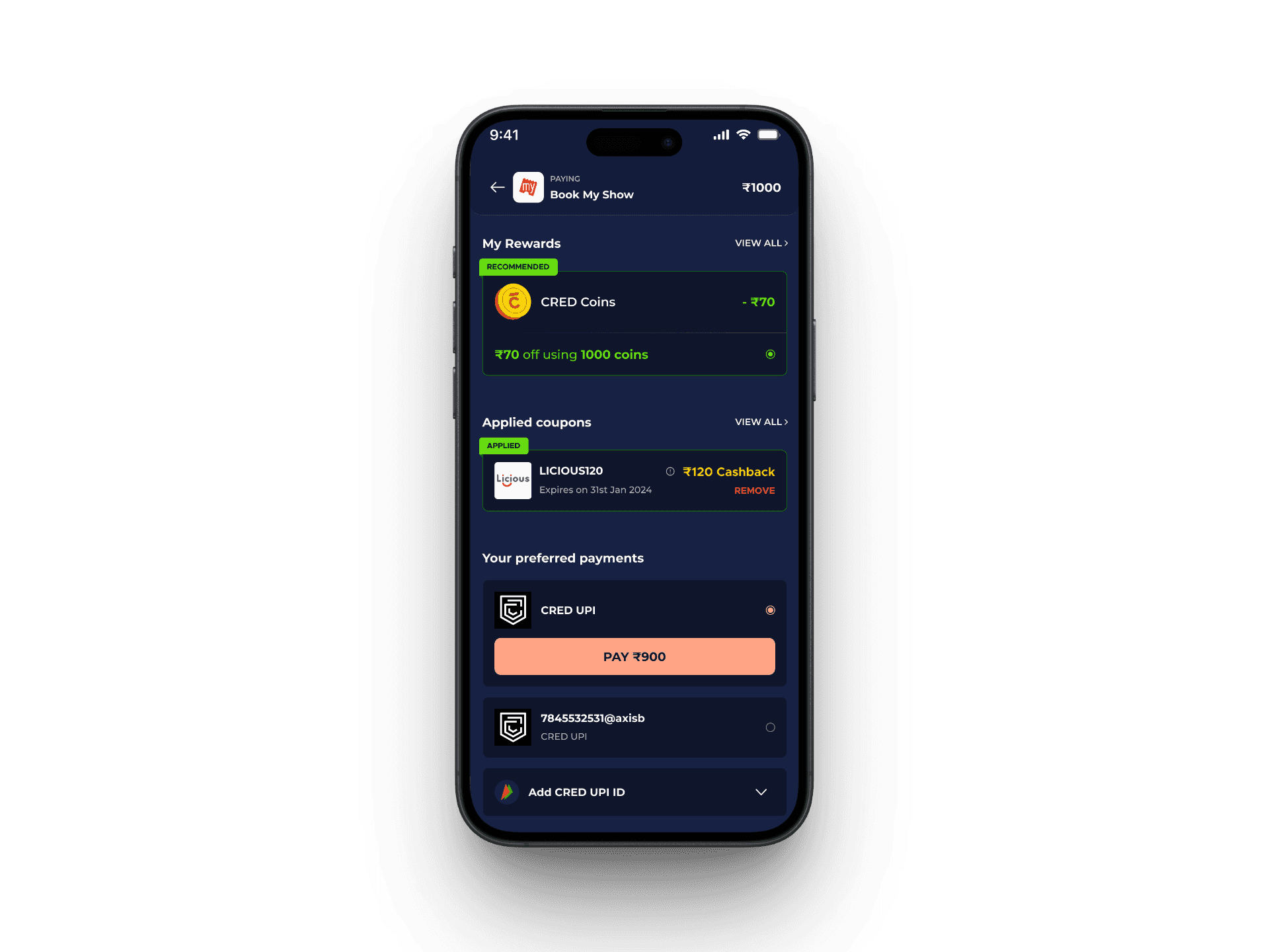 Ex. you can use your Cred coins to get cashback on Bookmyshow.