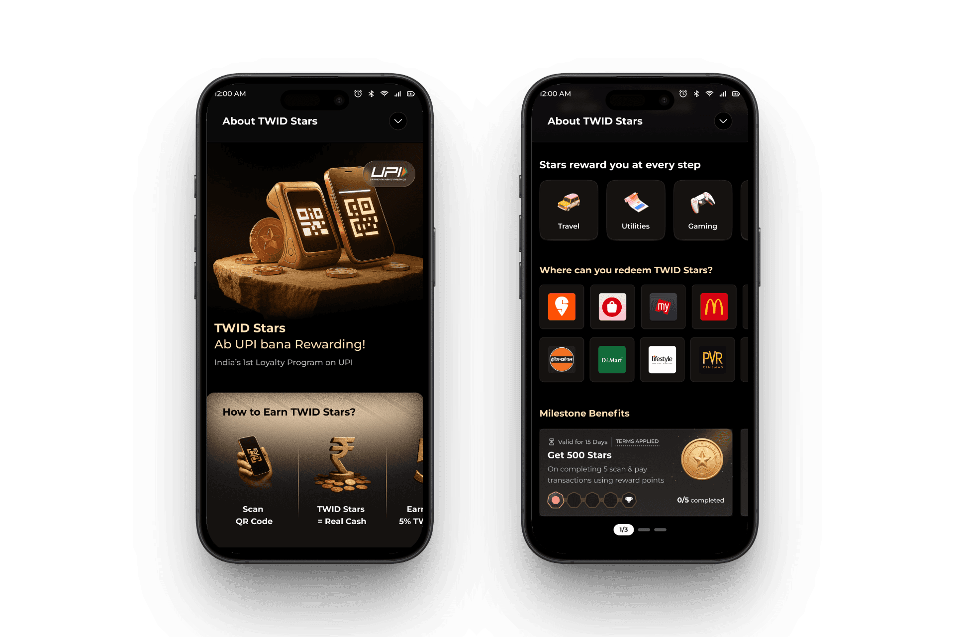 Crafted the Milestones feature to guide users into forming a habit of paying with TWID. Designed multi-step checkpoints across UPI, bill payments, and merchant spends — with visual progress, instant gratification, and transparent rules. Milestones played a crucial role in onboarding activation and driving a viral product moment with record-breaking transactions.